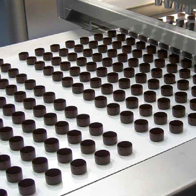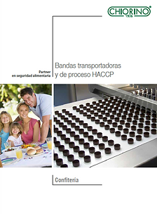 Las bandas transportadoras y de proceso HACCP satisfacen las aplicaciones más difíciles en la elaboración y empaquetado de chocolate, pastelería, productos de confitería, caramelos, gomas de mascar, toffees, “nubes de azúcar”.
